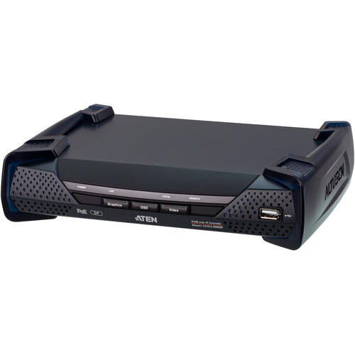 TheĀ KE9952R 4K DisplayPort Single-Display KVM over IP Receiver with PoEĀ fromĀ ATENĀ is a receiver that provides console access from a separate location when connected to a separately available KE9952T transmitter. The KE9952R allows access to a computer system from a remote USB console (USB keyboard, USB mouse, DisplayPort monitor) over an intranet, enabling users to locate computers in a secure and temperature-controlled environment, which is isolated from users’ workstation. The KE9952R supports one DisplayPort display at each end, providing video resolutions up to 3840 x 2160 30 Hz (4:4:4) as well as flawless and lossless video compression quality with minimal latency.