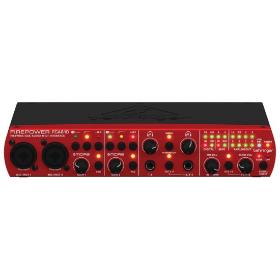 ⢠Audiophile audio interface with 24 bit/96 khz resolution for virtually any digital recording/mixing environment ⢠2 state-of-the-art midas designed mic preamplifiers, with phantom power, individual pad, low cut and hi-z ⢠Multi-channel audio and midi operation via firewire or usb2.0 ⢠Compatible with popular recording software including avid pro tools, ableton live, steinberg cubase, etc. ⢠Ultra-flexible connectivity via analog and s/pdif i/o ports (coaxial and optical)