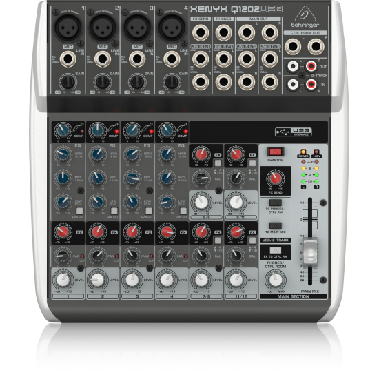 Behringer Q1202USB Premium 12-Input 2-Bus Mixer with XENYX Mic Preamps and Compressors, British EQ and USB/Audio Interface