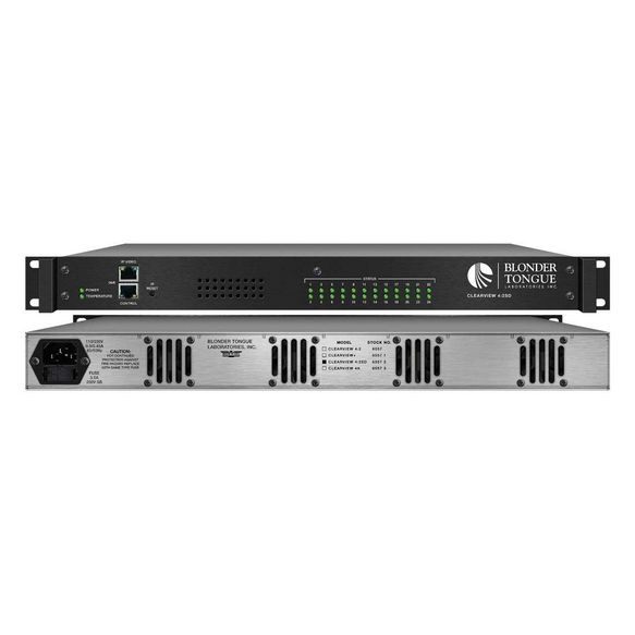 The Clearview 4:2 SD is a professional grade low-cost-per-stream video Transcoder, designed to Transcode up to (24) HD or SD programs from H.264/MPEG-4 sources to SD MPEG-2 output in a 1RU form factor. The unit accepts Unicast H.264 video, over IP transport streams and re-encodes the video content to SD MPEG-2 transport streams for IP Unicast delivery.