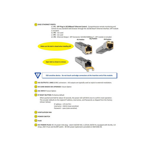 - Power: 110-230VAC, 60/50Hz (Fuse: 3.0A, 250V, SloBlo); -48VDC (Fuse: 2.0A, 250V SloBlo)