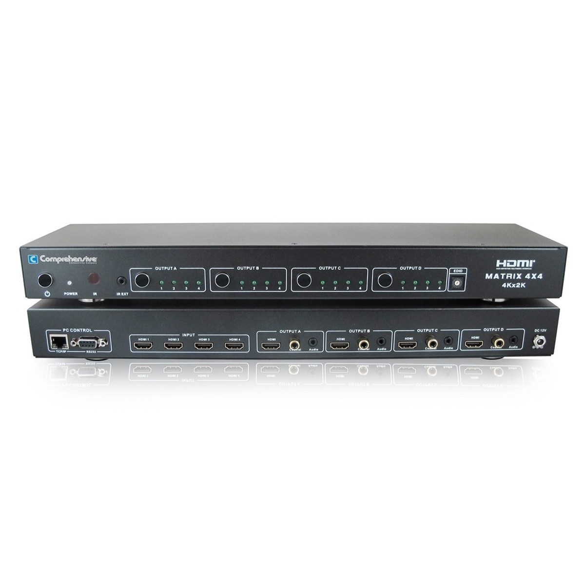 Featuring theĀ CSW-HD442-4K60 4×4 HDMI 2.0, 4K60 Matrix Switch from Comprehensive with control and HDCP 2.2 compliance. This high performance device allows the user to connect up to four HDMI inputs to up to four HDMI outputs. Any of the four input sources (e.g. Blu-ray player, cable box, gaming system) can be displayed on any of the four output sources (e.g. flat screen, projector, monitor) simultaneously. It supports high quality 4K@60 HzĀ (YCbCr 4:2:0)Ā resolutions as well as four channel ARC control. Additionally, it supports HDMI audio data reception such as PCM up to 192Hz, compressed audio (IECĀ 61937), DSD, DST, DTS and HBR.