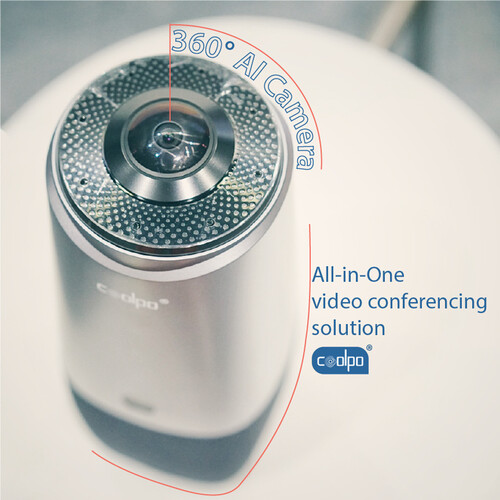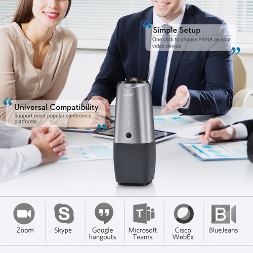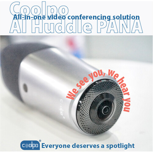Capture clear video and audio of all your meeting participants with the AI Huddle PANA 360 All-In-One Conference Solution from Coolpo. This huddle space camera transmits up to 4K video via a USB connection and features a four-microphone array, artificial intelligence (AI), and a 360° speaker, as well as pan, tilt, and zoom functions and compatibility with platforms like BlueJeans, Cisco Webex, Google Hangouts, Microsoft Teams, Skype, and Zoom.