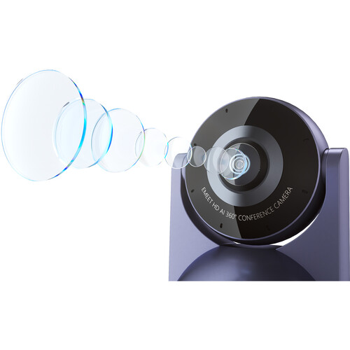 Capture everyone in the room with the Meeting Capsule 360° Video Conference Camera from eMeet. Designed primarily for conference rooms, this camera features a 360° panoramic fisheye lens that can record participants within a 13′ radius at Full HD (1080p) quality. With eight omnidirectional mics, a built-in speaker, and AI-driven enhancements, you can quickly get the meeting underway.