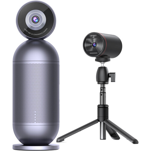 Capture everyone in the room with the Meeting Capsule Pro 360° Video Conference Camera and Satellite Webcam Kit from eMeet. Featuring dual UHD 4K fisheye lenses, the Meeting Capsule Pro delivers a 360° panoramic view that can focus on individual speakers. Meanwhile, the wireless Full HD co-camera may be daisy chained to the Meeting Capsule Pro and mounted onto a tripod for a fixed view of an individual or whiteboard.