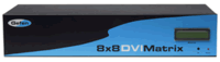 The 8×8 Matrix has eight DVI inputs and eight DVI outputs. You connect your eight computer DVI ports to the 8×8 Matrix inputs, then connect your eight DVI displays to the 8×8 Matrix outputs.Ā