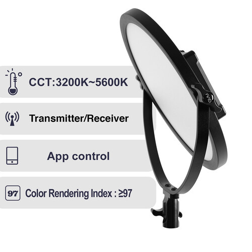 TheĀ Bi-Color Edge LED Soft Video Light PanelĀ fromĀ GVMĀ is a good choice for beauty, makeup, hair, or use as a main light in fashion or portraiture. The dimmable fixture has a 10″ diameter and can be tilted to angle the output. The color temperature is variable from 3200 to 5600K to match ambient light conditions, other fixtures, or just for creative expression. The form factor creates natural-looking catchlights reflected in your subject’s eyes. You can control adjustments locally on the fixture or make them wirelessly from your phone with the GVM app. The light runs on AC via the included power supply but will also run on two optional NP-F-type batteries when AC power is unavailable.
