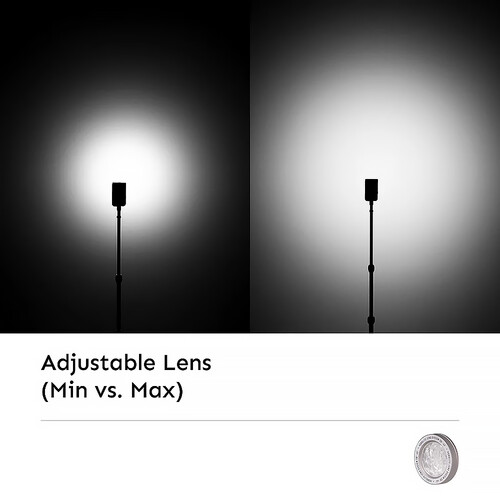 The included adjustable lens lets you adjust the beam angle between 20° spot and 45° flood, which can also boost the light intensity by up to 6x.