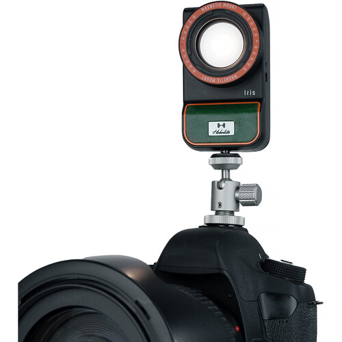 The Iris includes an adjustable lens, a frosted dome, a USB-C charging cable, and a pouch for protection. The dome softens the output of the Iris by dispersing the light, while the lens modifies the fixture’s beam spread. Giving you all the essential accessories you need, this kit also includes a Fresnel lens, a set of four colored gel filters, an aperture ring, and a ball head cold shoe adapter for mounting the light directly to your camera.