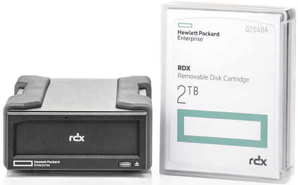 The HP RDX Removable Disk Backup System offers fast disk-based performance with the ability to store 2 TB of data on a single removable disk cartridge at speeds of up to 360GB/hr. Portable, durable and rugged removable disk cartridges simply and securely store your backups off site for complete data protection and peace of mind.
