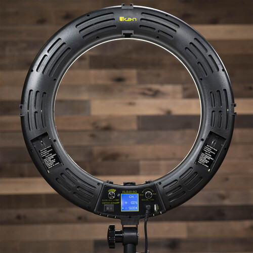 The Oryon Ring Light offers color temperature variable from 2700 to 5600 and anywhere in between to blend seamlessly with other fixtures, or to meet the challenge of ambient light conditions. Light intensity is also adjustable from 0-100% with a simple twist of the knob. While you can make these adjustments locally on the light, ikan has also included a wireless RF controller so you can make them remotely as well.