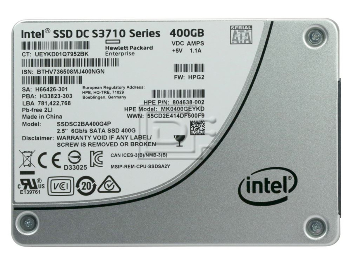 HPE P/N: 804638-002 SSDSC2BA400G4 SSDSC2BA400G4P1