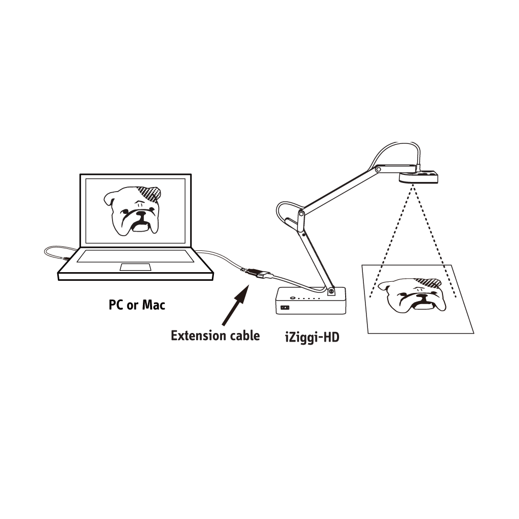 For times when a WiFi connection isn’t available or feasible, you always have the option to connect iZiggi-HD’s camera directly to PC or Mac via any standard USB port and the included extension cable. iZiggi-HD works just like our popular Ziggi-HD when connected to a computer. With our IPEVO Presenter software, you’ll enjoy the same image customizations, snapshot capture and management, Full Screen mode and other features available with our original doc cam.