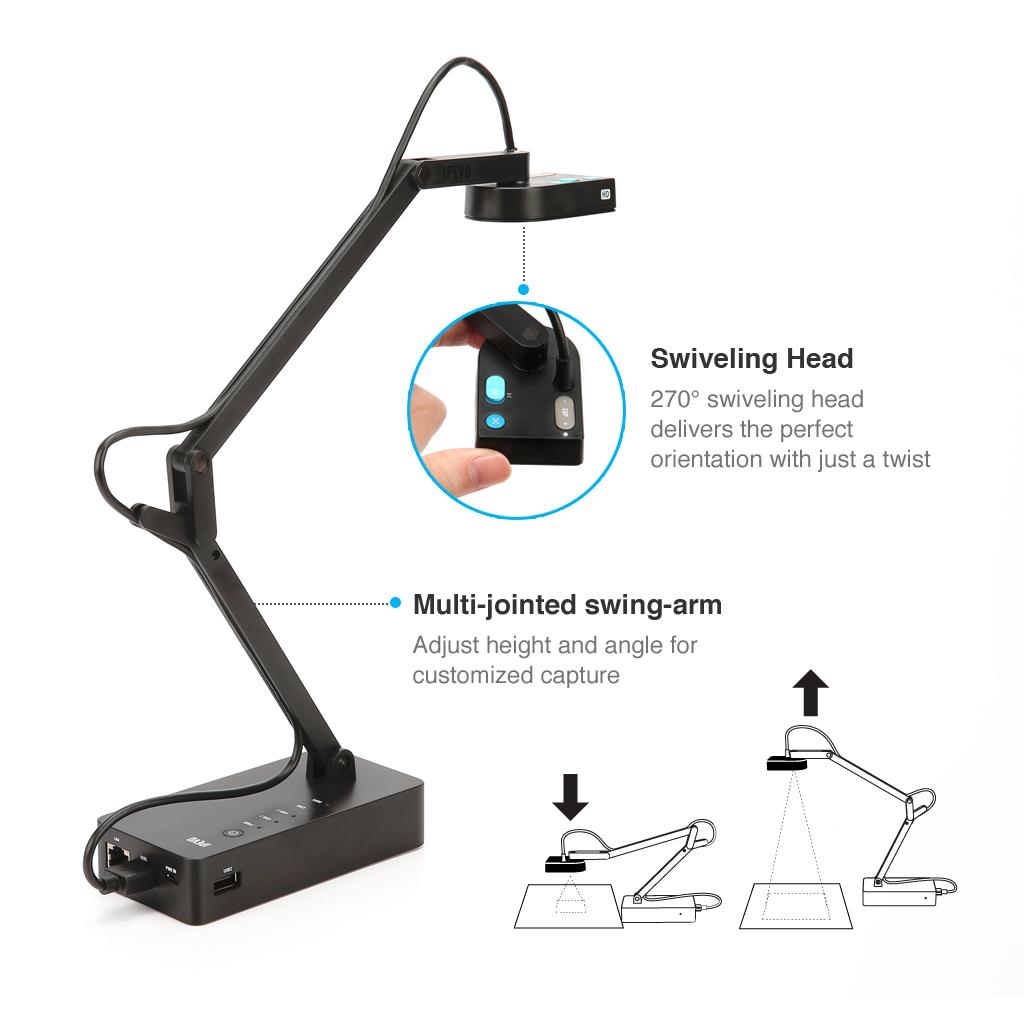 - Multi-jointed stand and swiveling head for effortless, versatile capture