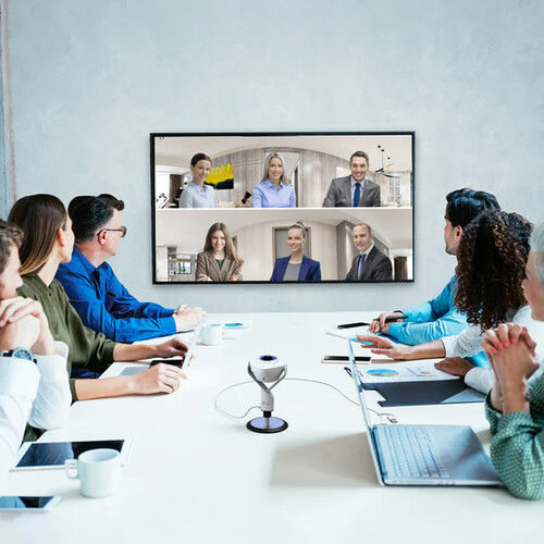 Designed primarily for conference rooms, the 360° AI-Powered Webcam with Speakerphone from j5create may be placed in the middle of the table to ensure that all participants are captured while meeting over Zoom, Microsoft Teams, Skype, and other applications.