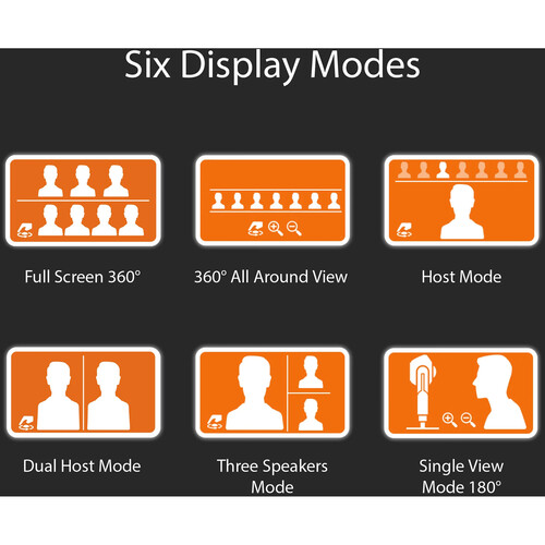Backed by a 5MP Sony STARVIS IMX335 sensor, this webcam can capture Full HD video at 30 fps. Six video modes, ranging from a 360° view to a single person, allow you to customize the experience to fit your needs. AI-driven features such as smart tracking and auto framing keep presenters in focus even as they move across the room. The omnidirectional microphones are designed to clearly pick up voices from up to 10 feet away, while the built-in speaker provides clear audio. A convenient remote control is included alongside a carrying case. The integrated USB-C cable has an attached USB-A adapter, making it easy to connect to your Windows, Mac, or Chromebook laptop.
