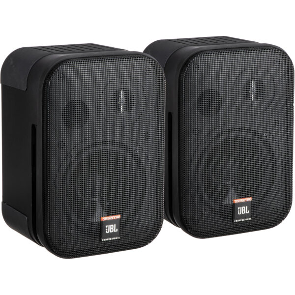 The blackĀ JBL Control 1 ProĀ are a pair of compact professional loudspeakers offering high quality at an affordable price for professional or residential applications. The rugged enclosure houses a 5″ woofer and a 0.75″ dome tweeter, which combine to provide a frequency response of 100 Hz to 18 kHz. When powered by a 150W (continuous) amplifier, the speaker provides a maximum SPL of 114 dB. Additionally, the cabinet is magnetically shielded for safe use near video monitors.