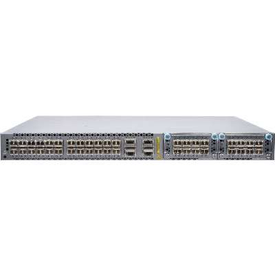 Featuring up to 72 wire-speed 1GbE or 10GbE small form-factor pluggable and pluggable plus transceiver (SFP/SFP+) ports, and up to 12 wire-speed 40GbE quad SFP+ transceiver (QSFP+) ports in a compact one rack unit (1 U) platform, the Juniper NetworksĀ® EX4600 Ethernet Switch delivers 1.44 Tbps of Layer 2 and Layer 3 connectivity to networked devices such as secure routers, servers, and other switches. The EX4600 base switch provides 24 fixed 10GbE SFP/SFP+ ports and 4 fixed 40GbE QSFP+ ports. A total of four models are available: two featuring AC power supplies and front-to back or back-to-front airflow; and two featuring DC power supplies and front-to-back or back-to-front airflow.