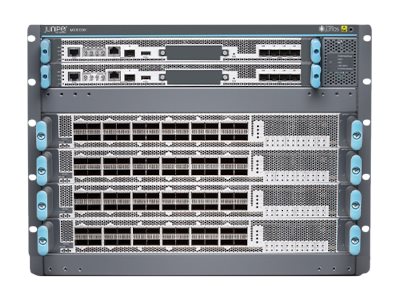 The MX10004 router is the most compact, high-density, and power-efficient modular router in the MX10000 line of modular packet-routing transport routers. At only 7 U in height, the MX10004 is designed for todayās space-constrained facilities. Like the larger MX10000 routers, the MX10004 supports Juniper Networksā 400-Gigabit Ethernet (GbE) architecture with inline Media Access Control Security (MACsec) on all ports for point-to-point security on Ethernet links.