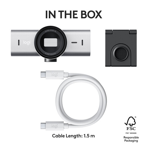 Upgrade the quality of video meetings and streaming sessions with the pale grayĀ MX Brio 4K WebcamĀ fromĀ Logitech, which captures UHD 4K video at resolutions up to 3840 x 2160 at 30 fps using a 5 Gb/s USB 3.2 Gen 1 (3.1 Gen 1/3.0) connection. Other supported resolutions include 1080p at 60 fps. Also featured is RightLight 5 with face-based image enhancements and HDR for greater image detail, from lowlight to direct sunlight, plus dual integrated beamforming mics that capture clear audio from up to 5′ away, a 4x digital zoom, and auto focus. Also, diagonal viewing angles of 65, 78, and 90° create a variety of framing options, while an included privacy cover keeps your privacy protected. This webcam is compatible with Windows 10 and later, macOS 10.15 and later, Chrome, and Linux. Attachment options include an included clip or a 1/4″-20 tripod mount.