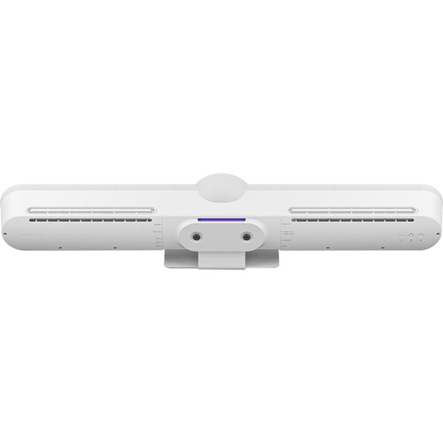 It features an integrated UHD 4K camera that has 4x digital zoom plus pan and tilt functions. A second camera, the AI Viewfinder, can keep track of the number of people in the room and controls the main camera to adjust for people leaving and entering. Six beamforming microphones and three speakers provide audio.