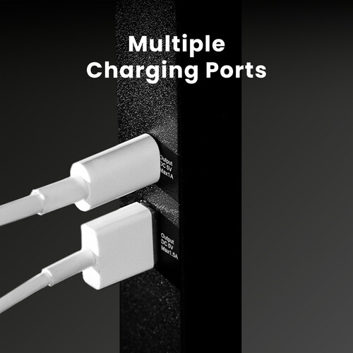 Convenient for indoor use, the light will run on AC power using its included power cord. The fixture also features USB-A and USB-C 5V/2A charging ports, so you can conveniently charge your camera, phone, or other accessory while you’re working.