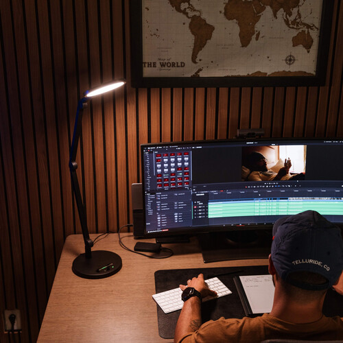 Elevate your desktop setup and workstation with the blackĀ Edge Light 2.0 Bi-Color LED Desk Lamp with Electronic BaseĀ fromĀ Lume Cube, the second generation of the brand’s versatile, soft-edge lighting solution. Whether you’re a remote worker or content creator at your desk, this 6″ light head features 112 premium LEDs that can be color balanced as warm, cool, or a mixture of both. The minimalistic weighted base harmonizes seamlessly with any workspace’s aesthetic, allowing the multifunctional desk lamp to be positioned wherever workflow demands. Adapt brightness and color temperature ambiance on the fly with an intuitive, touch-based slide control in the base. Four individual articulation points allow the Edge Light 2.0 to be positioned wherever needed.