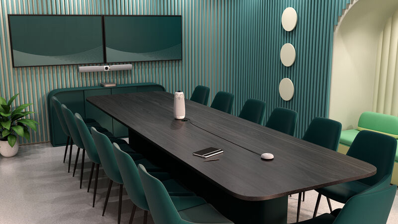 • Two 360° speakers to hear remote team members