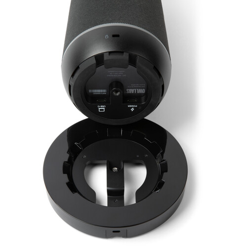 Keep your Meeting Owl 4+ stable on your meeting table with this blackĀ StandĀ fromĀ Owl Labs. This solid, weighted resin stand features a steel interior to ensure a solid hold for your Meeting Owl 4+. The bottom features rubber feet to grip the table so it can’t be moved or knocked over easily. There are channels around the base to organize the Owl’s cables. The Owl is installed using the captive 1/4″-20 screw on the base, and it is tightened using the included Allen wrench.