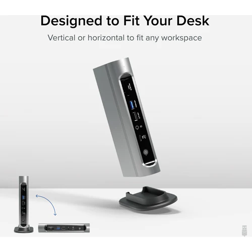 The versatile mounting options allow for both vertical and horizontal positioning, adapting to any desk setup. The premium build quality and included stand ensure stability while maintaining a professional appearance in any orientation.
