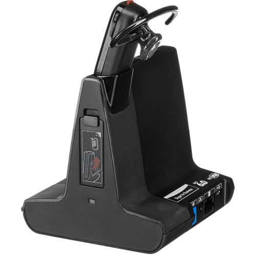 The Savi 8245-M headset provides you with up to 7 hours of talk time per battery, but practically unlimited talk time by regularly swapping the two included headset batteries. While one is in use, you can recharge the other inside the base station. The included cabling lets you connect the base to your existing desk phone, or to a Mac or Windows-based PC, where you can use it with a softphone application. The battery will only recharge when connected to a PC via USB.