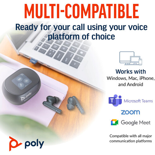Styled in carbon black and loaded with features that both business leaders and audiophiles will love, theĀ Voyager Free 60+ UC EarbudsĀ fromĀ PolyĀ are a pair of in-ear earphones with adaptive hybrid ANC technology for stunning sound and three microphones per earbud with WindSmart technology for crystal-clear, hands-free telecommunication. The centerpiece of these earbuds is the Touchscreen Charging Case, which, along with providing up to 24 hours of noise-canceling playback and 16.5 hours of talk time, sports an advanced OLED multi-touch display for keeping your settings and vital information at your fingertips.