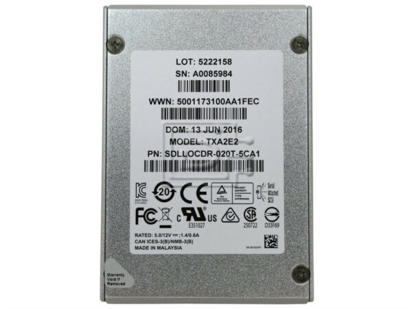 SanDisk SDLLOCDR-020T-5CA1 2TB 2.5in 6Gbps Optimus Eco eMLC Read Intensive SAS Solid State Disk Drive