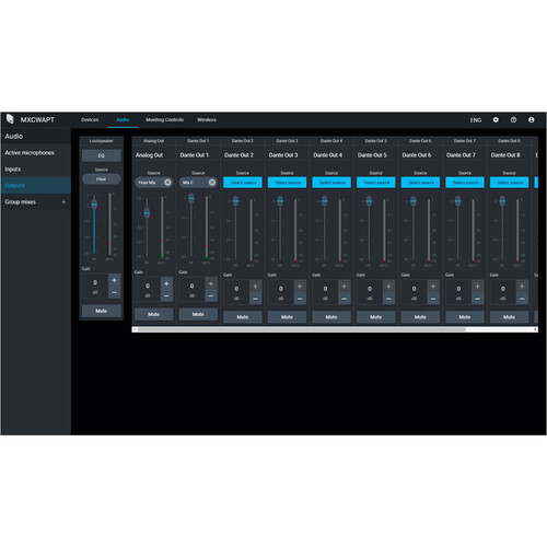 The MXCWPT-B scans the 2.4 and 5 GHz frequency bands and identifies the clearest channel. It then conveys that information to the conference units. The system takes advantage of limited-access DFS spectrum to expand the number of available channels. If a conflict is identified, the Access Point instructs all conference units to change channels. It features AES-128 encryption for enhanced privacy.