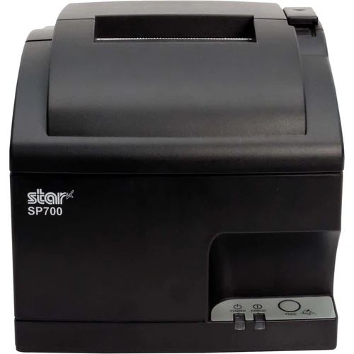 The Star Micronics SP700 SP712 stands as a testament to reliable kitchen printing technology, featuring a robust design optimized for high-temperature, humid kitchen environments. Its sleek gray housing contains an efficient 9-pin dot matrix system that delivers crisp, two-color prints at an impressive 4.7 lines per second. The thoughtfully engineered clamshell design ensures quick paper loading and maintenance, while the embedded power supply maintains a compact footprint ideal for busy kitchen spaces.