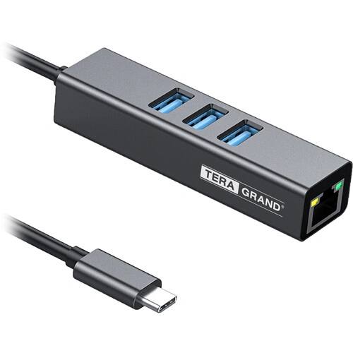 Tera Grand USB 3.1 Type-C Gigabit Ethernet Adapter & 3-Port USB Hub (Gray)