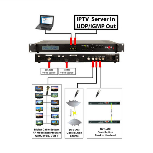 The Thor ATSC Low Latency modulator is a multi-dynamic tool used to distribute any live HDMI video source such as a cable TV STB, DVD player, Digital Signage Device etc, and broadcast that video on your own RF channel over your existing coax infrastructure. This easy to use encoder modulator is useful for any type of high quality video encoding & distribution that necessitates ultra-low latency feature that will reduce average encoding speeds from 1200-1600ms down to 70-250ms. This unit can be just an encoder, a modulator, or IPTV server, or all 3 at once. Units range from 1-4 channels and are compatible with any HDMI source that will output an RF channel with perfect HD quality video up to 1080p60 that encodes in either MPEG-2 or H.264. Creating your headend with dozens of channels can be easily accomplished by stacking several units and daisy chaining the RF inās & outās, or by using an external RF combiner.