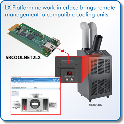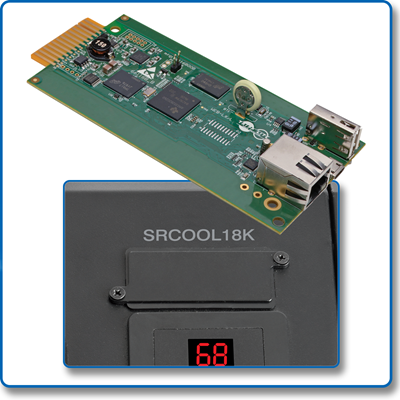 A remote cooling management card turns your SRCOOL2KWM, SRCOOL7KRM or SRCOOL18K cooling unit into a network-managed device.