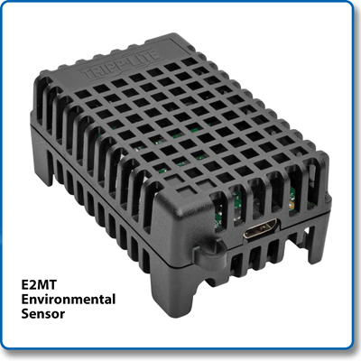 Use the included E2MT environmental sensor module to monitor temperature inside a rack or near rack equipment. When the temperature exceeds the target value selected, the cooling unit will turn on to cool equipment. When the temperature falls below the target value, the unit will turn off. The sensor connects to the remote management card with the included USB cable.