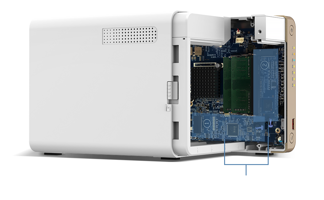 • Attain greater NAS performance by installing M.2 2280 NVMe PCIe SSDs (sold separately).