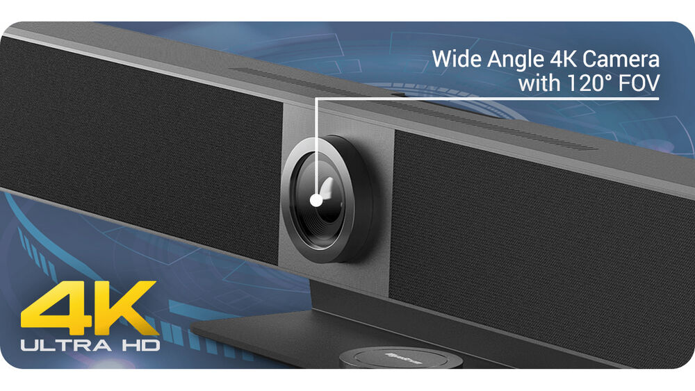 The integrated 4K camera not only provides a crystal-clear video conference experience but delivers smart AI enhanced functionality, including intelligent backlighting, auto framing, presenter tracking, and speaker tracking.