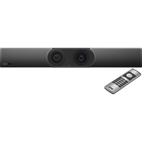 The MeetingBar A30 with VCR11 Remote Control from Yealink provides an all-in-one video collaboration solution for your medium-sized room meetings. This camera uses two 8MP sensor cameras, one with a 10x zoom and a 90° view and one with a superwide 120° wide-angle lens to provide exceptional video quality with both an overview and close-up coverage. It features AI-powered functions like Auto Framing and Speaker Tracking, an electric privacy shutter, and built-in Bluetooth 4.2 and dual-band Wi-Fi for reliable video conferencing. It includes a VCR11 remote control featuring customizable shortcuts, pan/tilt controls, and up to 9 presets.